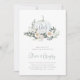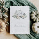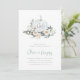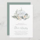 Fall in love with this ethereal botanical design for autumn engagement parties. Elegant design features a white watercolor pumpkin inscribed with the couple's initials and flanked by white flowers, green foliage, and eucalyptus leaves.