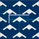 White B-21 Raider Stealth Bomber Pattern on Blue Fabric