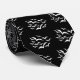 This novelty Halloween tie is covered in a collection of simple images of bats flying together in a cloud pattern. The bats are white and the background colour of the tie is black.