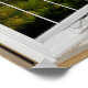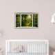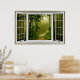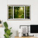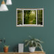 The artwork creates the illusion of having a bay window overlooking a forest path. The illusion makes you feel as though you're looking out at a beautiful forest with rays of sunshine between the trees.