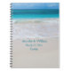 Stylish beach themed wedding guest sign in notebook, with a lovely photograph of a white sandy beach and aqua blue water. Aqua blue coloured text is ready to personalise to suit your wedding needs. Matching wedding products are available.