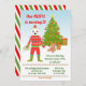 This modern design is perfect for a Christmas, winter, or December little girl - or boy - birthday party. You can pick from three different Christmas beloved characters: Santa Claus, Rudolph, or The Polar Bear. This Christmas traditional character is wearing an ugly sweater, gloves, and a matching Christmas hat. He stands next to a Christmas tree, some presents, and a plush bear. Every Christmas it's the same story: Christmas lights are all tangled up! The back of this invitation has stripes in green, white and red. All text is easy to personalise with your own details. You can pick another font, colour, or size for the text. Get your guests into wearing ugly sweaters with this cute Polar Bear kids birthday party invitation! It will be colourful and fun.