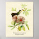 Vintage natural history illustration by Antoine-Germain Bevalet, c.) A green hummingbird with a white throat and chest rests on a tropical calliandra powderpuff plant with pink flowers, with a light golden yellow parchment texture background. Digitally cleaned and enhanced while still retaining its vintage characteristics. Features common and scientific names in decorative fonts. Sized to fit standard frame.