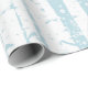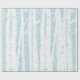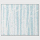 Pretty holiday or winter wrapping paper features white birch trees on a light blue background.