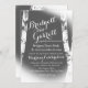 Rustic country paper white birch trees and design in white and dark grey chalkboard inspired look. Typography style text for a modern whimsical look. Carved heart on back of invitation with custom initials for the bride and groom.