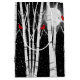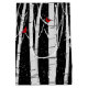 Red cardinals in white birch trees with full moon and snowflakes on a black background.