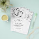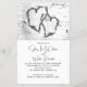 Budget wedding invitations with white birch bark design. Printed on very affordable flyer paper, the invitation comes in three sizes. Two hearts are “carved” into the wood at the top with text beneath. Names are in script and other text is printed, in black.