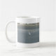 White Bird on Grey Sand Beach Art Print Coffee Mug