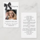 White background, and space for your photo. Decorated with a black bow. Personalise and add name, dates and your text and prayer.