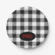 White Black Buffalo Plaid Monogram Initials Paper Plate
