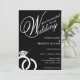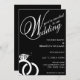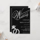 Elegant black and white wedding invitation with shiny diamond ring. Personalise it with your event details.