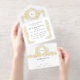 White Black Gold Botanical Classic Wreath Wedding All In One Invitation