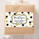 Wedding thank you labels in white with gold and black confetti dots pattern, please note gold is photographic effect only. Perfect for wedding favours or as wedding wine bottle labels.