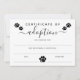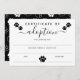 White Black Paw Prints Certificate of Adoption