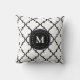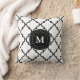 White Black Quatrefoil Pattern Monogrammed Pillow