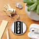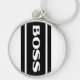 A white background with black racing stripes and text that says Boss is the focus of this high quality key chain. If you own a Boss, you know what I'm talking about. Step on the gas and go fast!