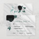 Elegant black white and teal blue flowers and leaves on silver grey marble background