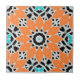 This ceramic tile features a bold, orange background that is adorned with intricate geometric shapes in white, black, and turquoise. The shapes are symmetrically arranged, creating a striking contrast against the orange backdrop. The white forms are given depth and visual appeal by the turquoise accents. At the centre of the tile, these geometric shapes converge to form a star-like pattern, which is a common motif in traditional geometric art. This design is both intriguing and harmonic, making the tile a standout item that can bring character and brightness to any room. The tile’s design is reminiscent of Arabic or Islamic patterns, as well as Spanish and Moroccan tile art, reflecting a rich cultural heritage. Whether used as a backsplash, flooring, or wall décor, this tile's unusual design and brilliant colours will improve the environment of your room.