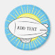 Cute cartoon style white blimp drawing. Bright yellow sun in the background. Custom magnets. Edit name on the balloon to customise it. Gift idea.