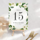 Chic floral table number cards feature a frame of watercolor white flowers, roses and peonies, framing your table number in white. Personalize with your names and wedding date, or name each table for an extra personal touch.