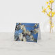 White blooming plum tree branch in spring card