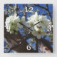 White Blossom Clusters Spring Flowering Pear Tree Square Wall Clock