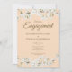 Elegant pretty white blossom engagement party invitation featuring delicate spring blossom framing your engagement party details in elegant gold lettering on a peach coloured background. Personalise with your special event details. Designed by Thisisnotme©