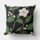 A dramatic floral illustration featuring delicate white blossoms and vibrant green leaves set against a sleek black backdrop. A modern, high-contrast design perfect for statement pieces