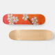 White blossoms on orange red spring background skateboard