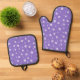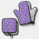 White Blossoms on Purple Oven Mitt & Pot Holder Set