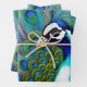 White blue and Green Piebald Peacock Wrapping Paper Sheet