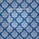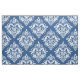 White & Blue Floral Damasks Geometric Pattern Fabric