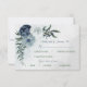 Beautiful botanical wedding response card with meal choice featuring romantic white, dusty blue and navy blue flowers with green leaves.