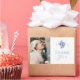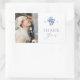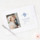 This memorable "thank you" sticker features a couple photo, a lovely set of contemporary fonts and floral monogram in dusty blue, against a crisp white background. This versatile sticker can be used in so many ways with your wedding favours and stationary and make a lasting impression.