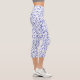 White Blue Glitter Leopard Animal Print Capri Leggings