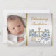 White Blue Gold Baby Boy Photo Christening Invitation