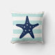 White Blue & Mint Wide Stripes Pattern Starfish Cushion