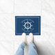 White & Blue Nautical Boat Wheel & Anchor Doormat