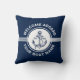 White & Blue Nautical Boat Wheel & Anchor Stripes Cushion