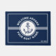 White & Blue Nautical Boat Wheel & Anchor Stripes Doormat