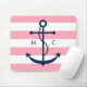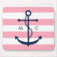 White Blue Pink Monogram Stripes Anchor Mouse Pad