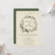 This beautiful white and green floral wedding invitation features a white floral wreath with green foliage and dried palm leaves on a parchment damask background. The invitation details are written in olive green. You can customise this elegant invitation with all your important wedding details. The back side features a coordinating green background. This invitation coordinates with the other products in the White Botanical Floral Wedding Collection.