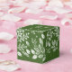 These 2'" square green party favour boxes feature an elegant white leaf and dot pattern, the words "Thank You" and your names in chic white lettering on the top. Perfect for your wedding, bridal shower, anniversary, Christmas or any special occasion. MATCHING items and more colours in our collection.