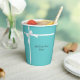 This paper cup features a graphic of white ribbon tied into a bow. Custom text allows you to add your own names or message.