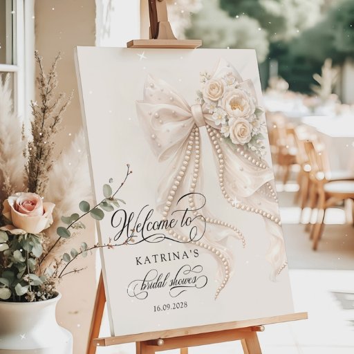 White Pearl Bow Floral Bridal ShowerDesigned by Katsiaryna Lukyanava