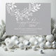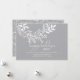 Simple and modern, this corporate holiday card features a white branch with leaves and evergreen on a grey background with white text that reads Happy Holidays with an area you can easily add your information. The back of the card has white branches, leaves, snowflakes, and pears on a grey backgrond.