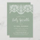 White Brocade Lace Sage Green Baby Sprinkle Invitation