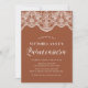 Invite guests to your event with this customisable Quinceañera invitation. It features an elegant brocade lace garland on a terracotta background. Personalise by adding your details. This lace Quinceañera invitation is perfect for any event theme or season.