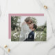 White Brush Hand Lettered Photo Save The Date Card. Stylish hand lettered photo save the date card featuring a beautiful brush script with pink mauve back colour. This photo save the date card is perfect for any season. Personalise by adding your favourite horizontal photo.
