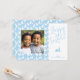 Celebrate Easter with this personalizable photo card designed by Destei. One side features a square spot for your photo that is framed with a thin white border and set against a light blue background patterned with white bunny silhouettes. The other side has a white background with “Happy Easter!” in playful tilted blue text, a lying-down blue bunny silhouette and space to add a name and year. The back of the card repeats the white bunny pattern over the blue background, creating a cohesive design perfect for spring greetings.